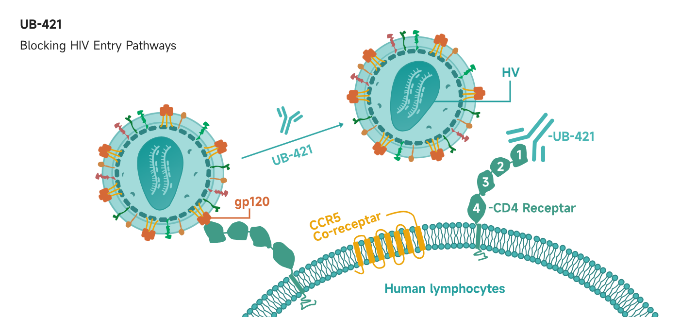 Rapidly reduces viral load during the early phase, achieving up to a 99% reduction in blood viral levels. This allows for a staged treatment approach, where UB-421 is combined with other broadly neutralizing antibodies or antiviral agents to strengthen long-term control.
